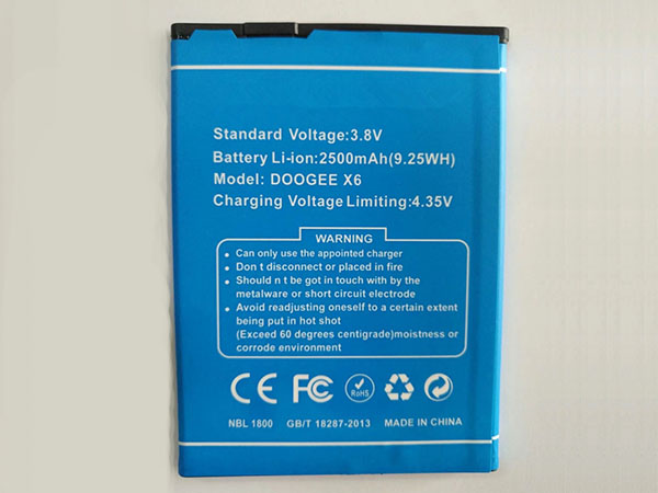 Doogee X6_Pro Batterij 2500mAh/9.25Wh 3.8v