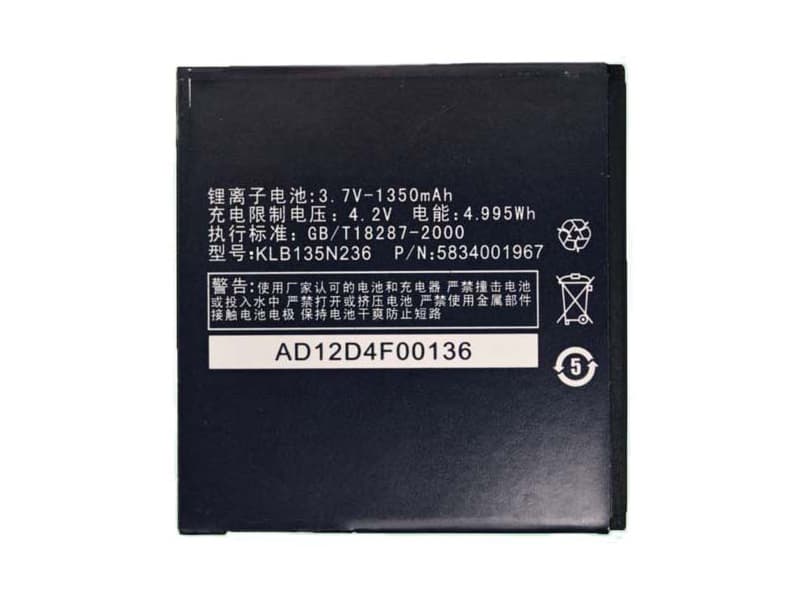 KONKA KLB135N236 Batterij 1350mAh/4.995WH 3.7V