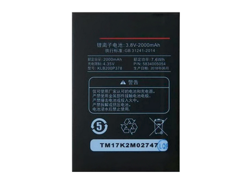 KONKA KLB200P378 Batterij 2000mAh/7.6WH 3.8V