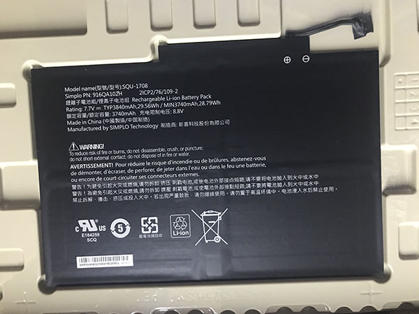 SIMPLO SQU-1708 916QA102H Batterij 3840mAh/29.56Wh 7.7V