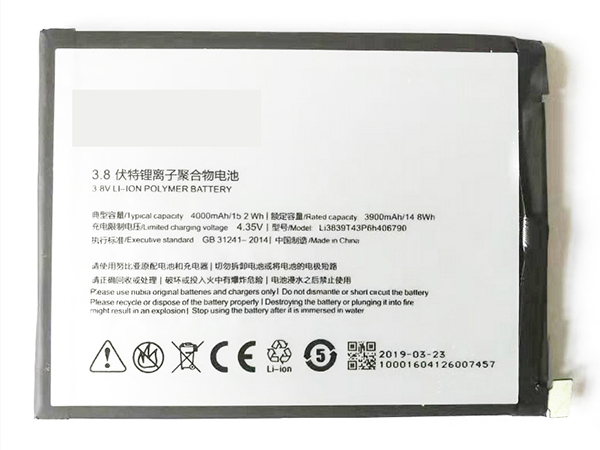 ZTE Li3839T43P6h406790 Batterij 3900mAh/14.8WH 3.8V