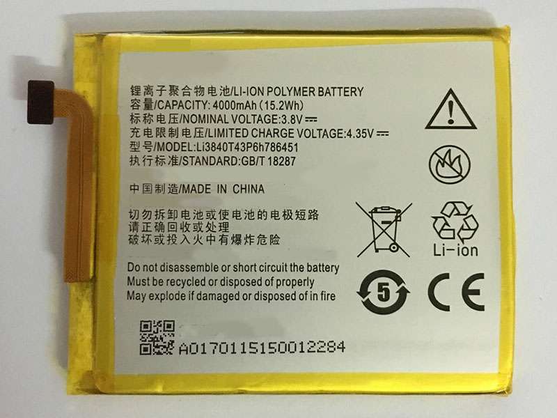 ZTE Li3840T43P6h786451 Batterij 4000mAh/15.2WH 3.8V