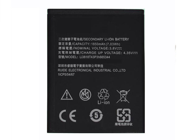 ZTE Li3818T43P3h665344 Batterij 1850mAh/7.03WH 3.8V