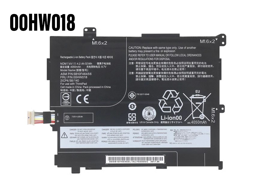 9840mAh LENOVO 00HW016 00HW017 00HW018 00HW019 SB10F46454 SB10F46455 SB10F46456 SB10F46457 4ICP5/56/120 32Wh 7.6V