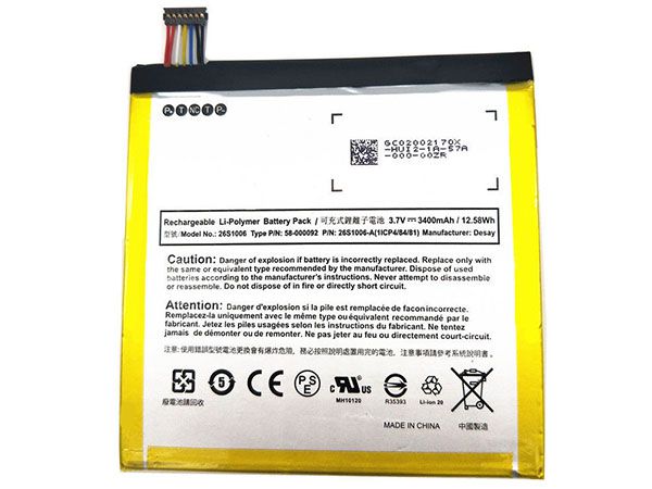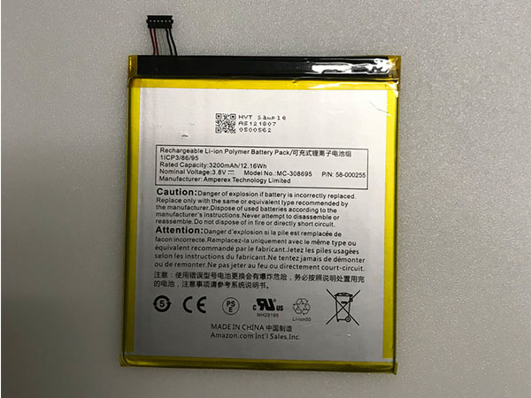 3520mAh/13.3Wh Amazon 58-000127 3210mAh/11.87Wh 3.8V