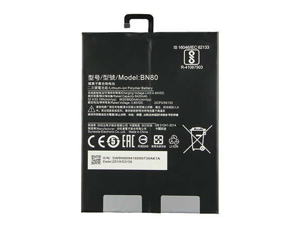 10000mAh/38.6Wh XIAOMI BN81 8000mAh/30.9Wh 3.87V