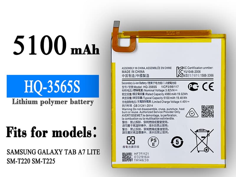 5100MAH/18.87Wh Samsung EB-BT567ABA 7300MAH/27.74Wh 3.8V/4.35V