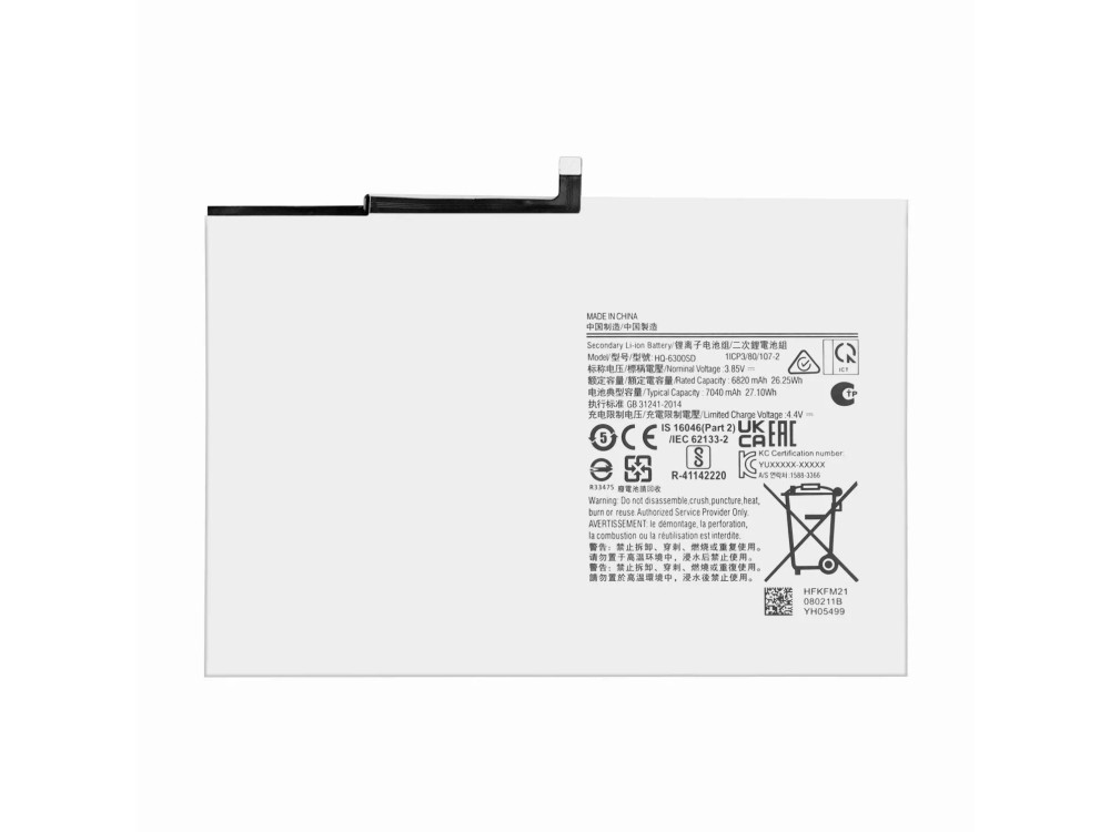 6820mAh/26.25Wh SAMSUNG EB-BX926ABE 11200mAh/43.46Wh 3.88V