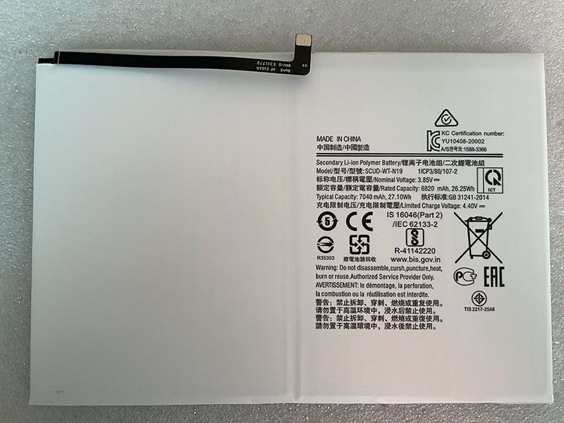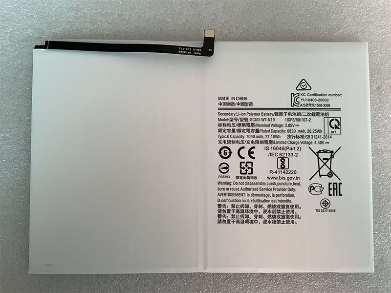 7680mAh/29.18Wh SAMSUNG WT-S-W11 6820mAh/26.25Wh 3.85V