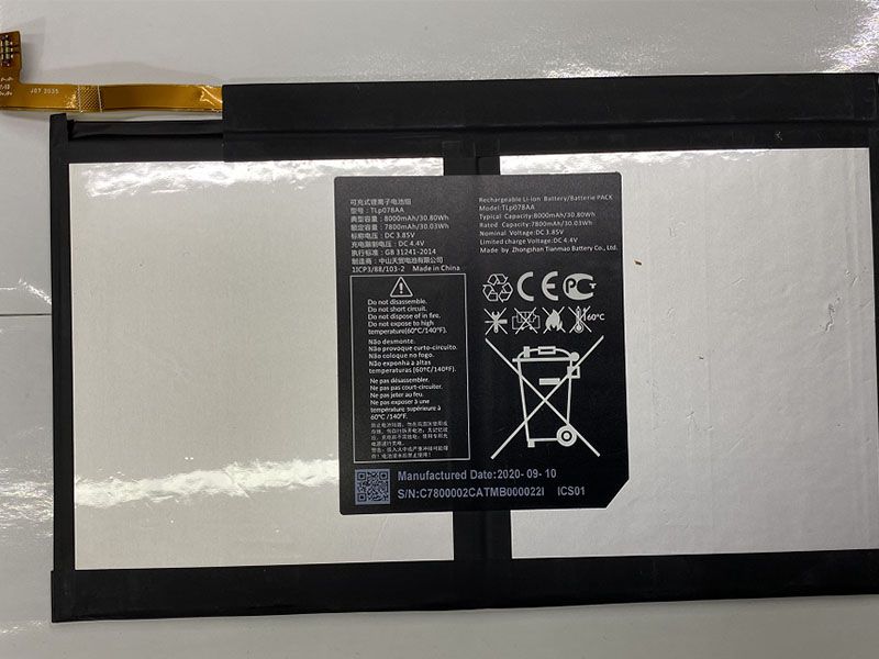 5820mAh/22.41Wh ALCATEL TLP100A1 10300mAh/39.86Wh 3.87V